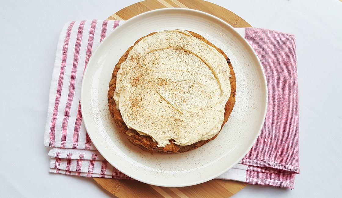 Maak ondertussen de frosting: voeg alle ingrediënten samen en klop traag op met een handmixer tot een luchtig maar vast geheel.